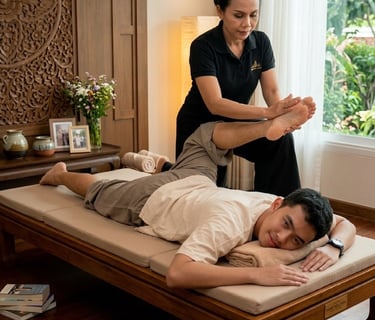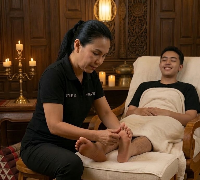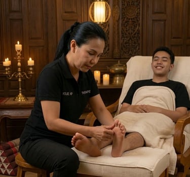 ☘️ A technical pressure-point therapy focused on the feet to stimulate the body’s internal organs, improve circulation, and restore systemic balance.