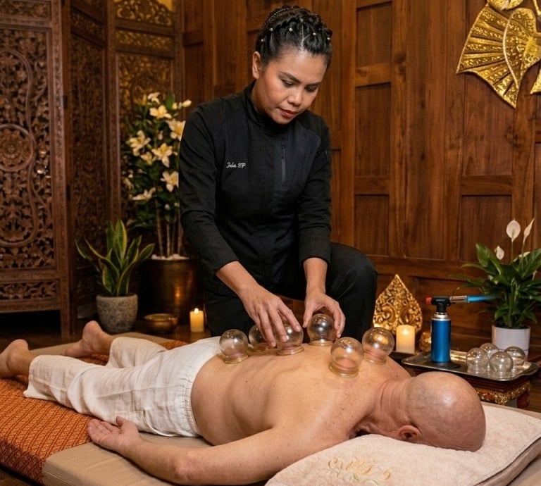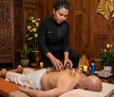 ☘️ The Process: A powerful detoxification session. We use Thai stretching to mobilize the body, followed by 30 minutes of targeted vacuum cupping to lift fascia and release myofascial adhesions. Best For athletes and high-stress professionals needing a deep physical detox.