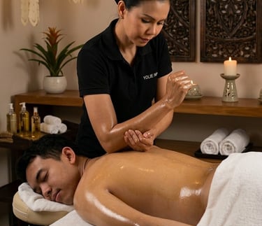 🌸 At Yolie’s Wellness Massage, we use overhead bars to safely deliver consistent, gravity-assisted pressure that flattens out chronic knots and decompresses your spine. Combined with the heat of volcanic stones and Thai stretching, this is the ultimate reset for the high-performance body.