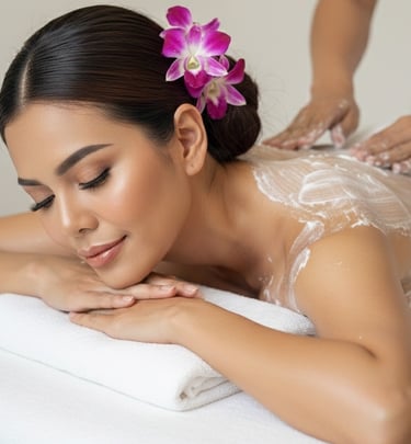 🌸 The Body Polish treatment is a signature experience that pampers you from head to toe. It uses a customized sugar scrub and body buffer to exfoliate and nourish your skin, leaving it soft and silky smooth.