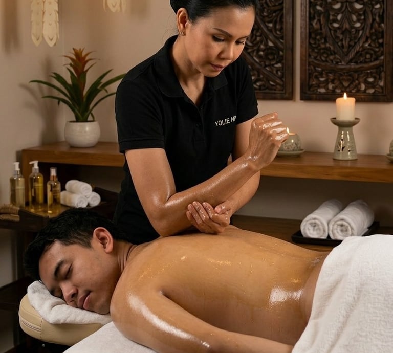 Our Light Mobility Fusion is the perfect middle ground for clients who find traditional stretching too intense. We blend a soothing Swedish oil massage with very light, graceful movements to open up your joints. No deep pulls—just soft, rhythmic motion to help you feel light and refreshed.